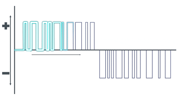 The ageLOC Boost device sends intermittent, variable pulses to the skin eight times a second. The pulses are charge-balanced, so they switch from positive to negative every 2.4 seconds. When used with our Activating Serum, this optimises and activates your skin for a more youthful complexion.