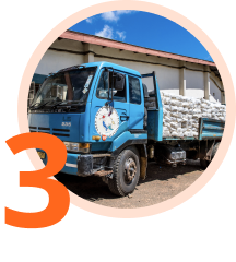 Utvalda välgörenhetsorganisationen hanterar logistiken kring insamling, transport och distribution till dem som behöver det.