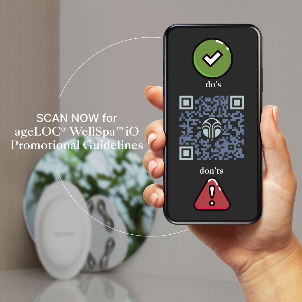 爲了協助大家正確地分享 ageLOC® WellSpa iO™,公司製作了 ageLOC® WellSpa iO™ 宣傳指南,以下簡單列出分享 ageLOC® WellSpa iO™ 的 DOs & DON’Ts。大家記得 scan QR code 或點擊以上連結閲讀宣傳指南的詳情並遵守指引啦!